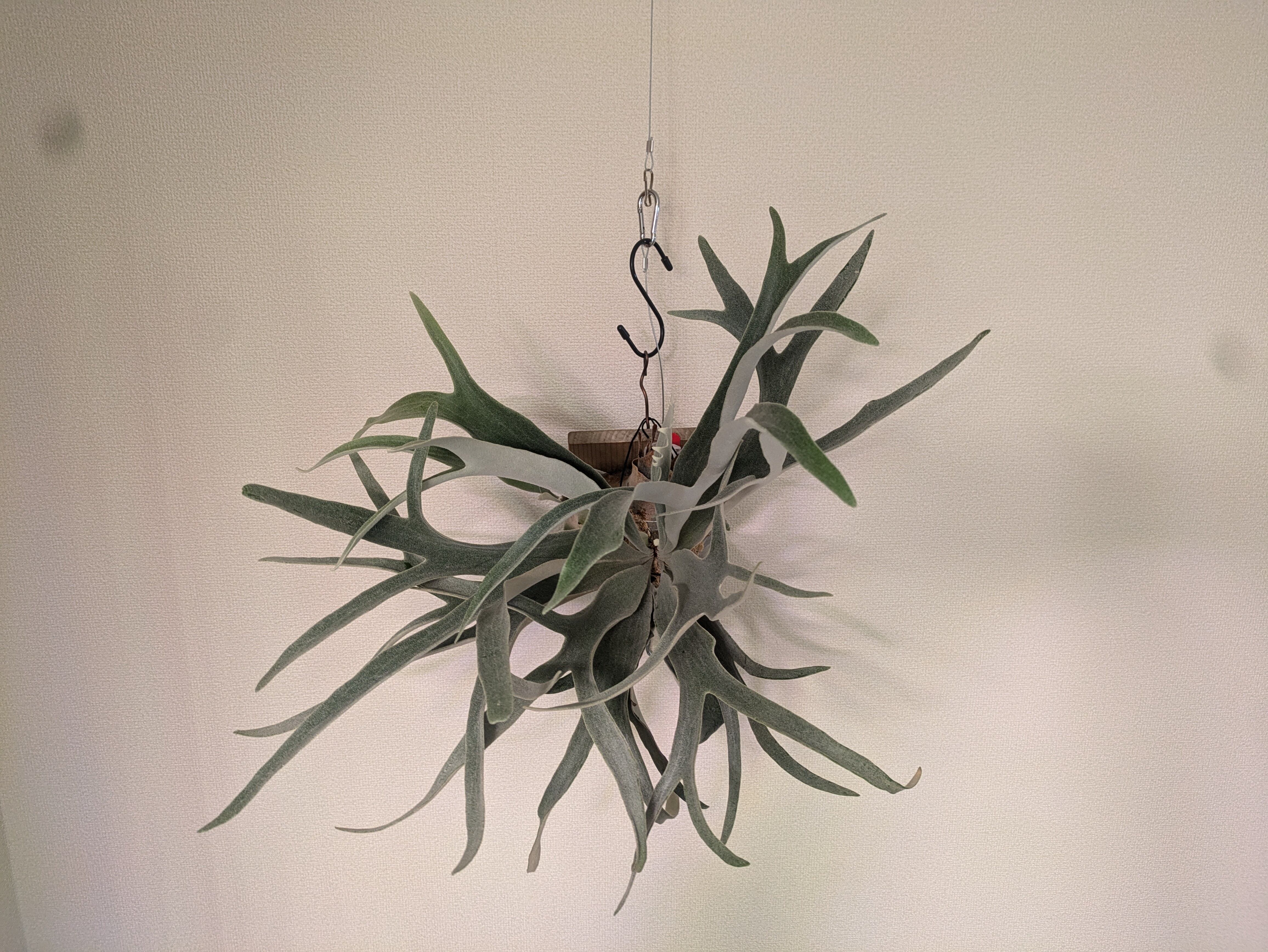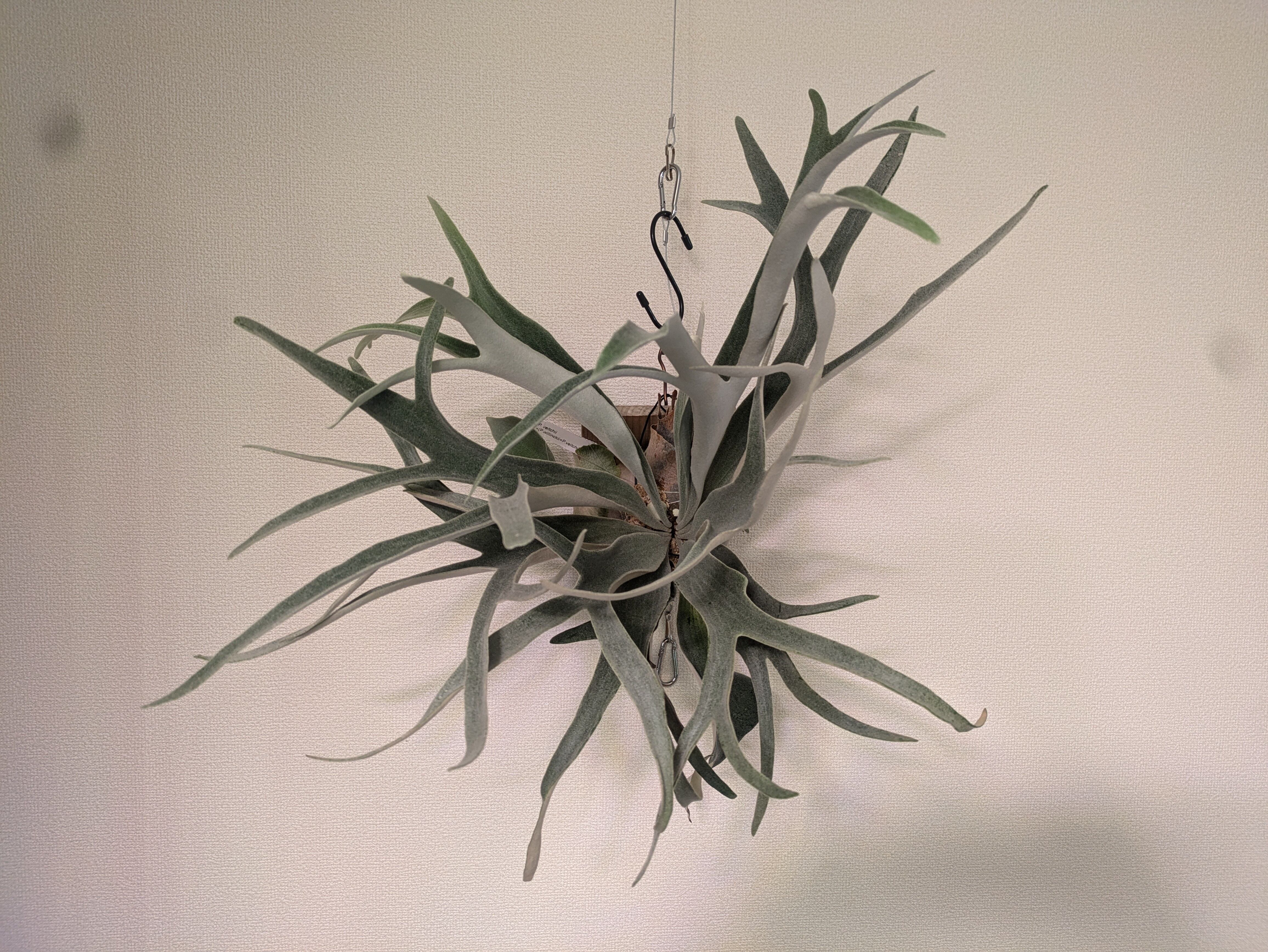 この株の最大の特徴は、貯水葉・胞子葉ともに際立つ白さ。willinckii の優雅なフォルムと veitchii の美しい質感が絶妙に融合し、唯一無二の存在感を放ちます。