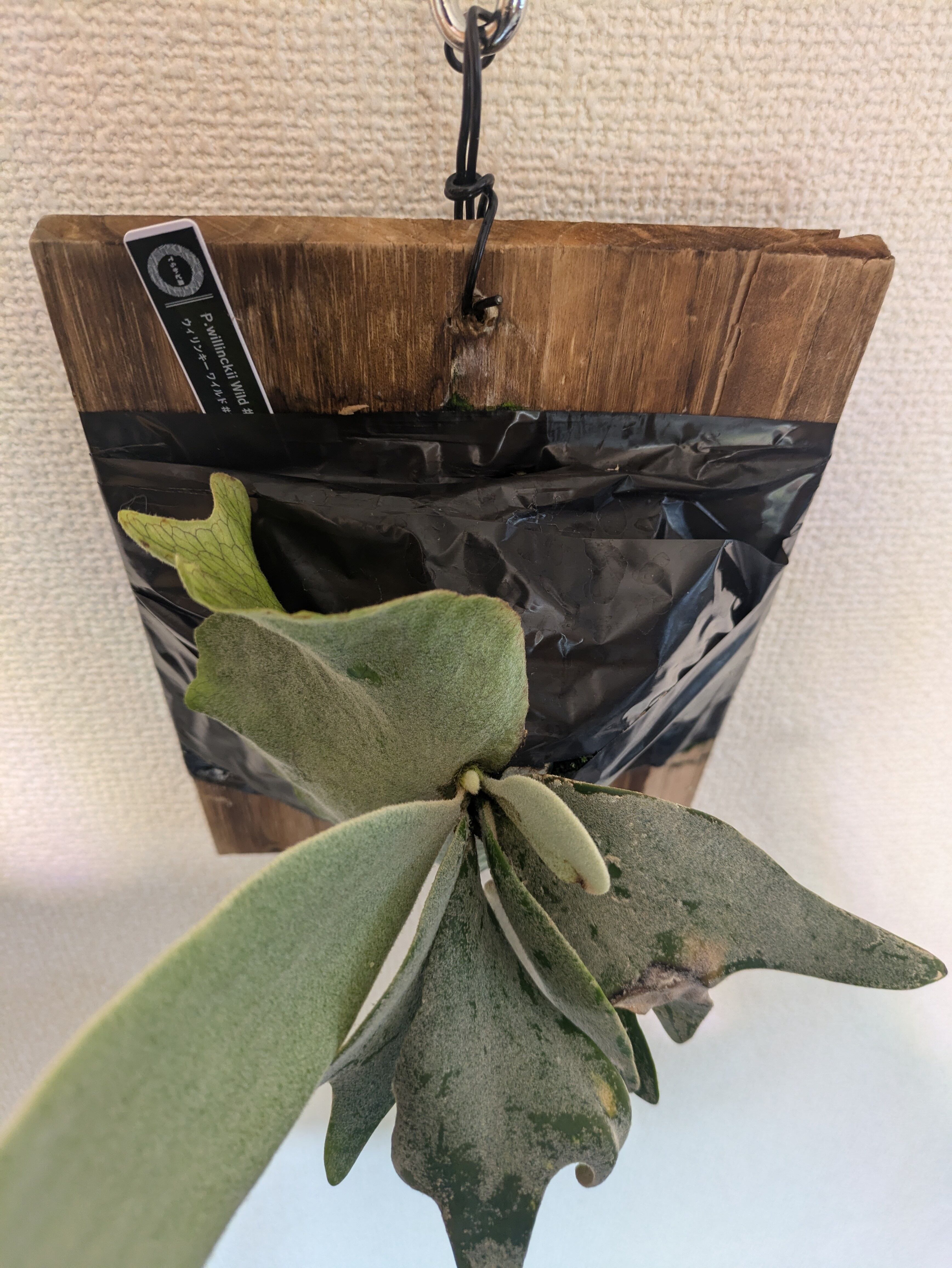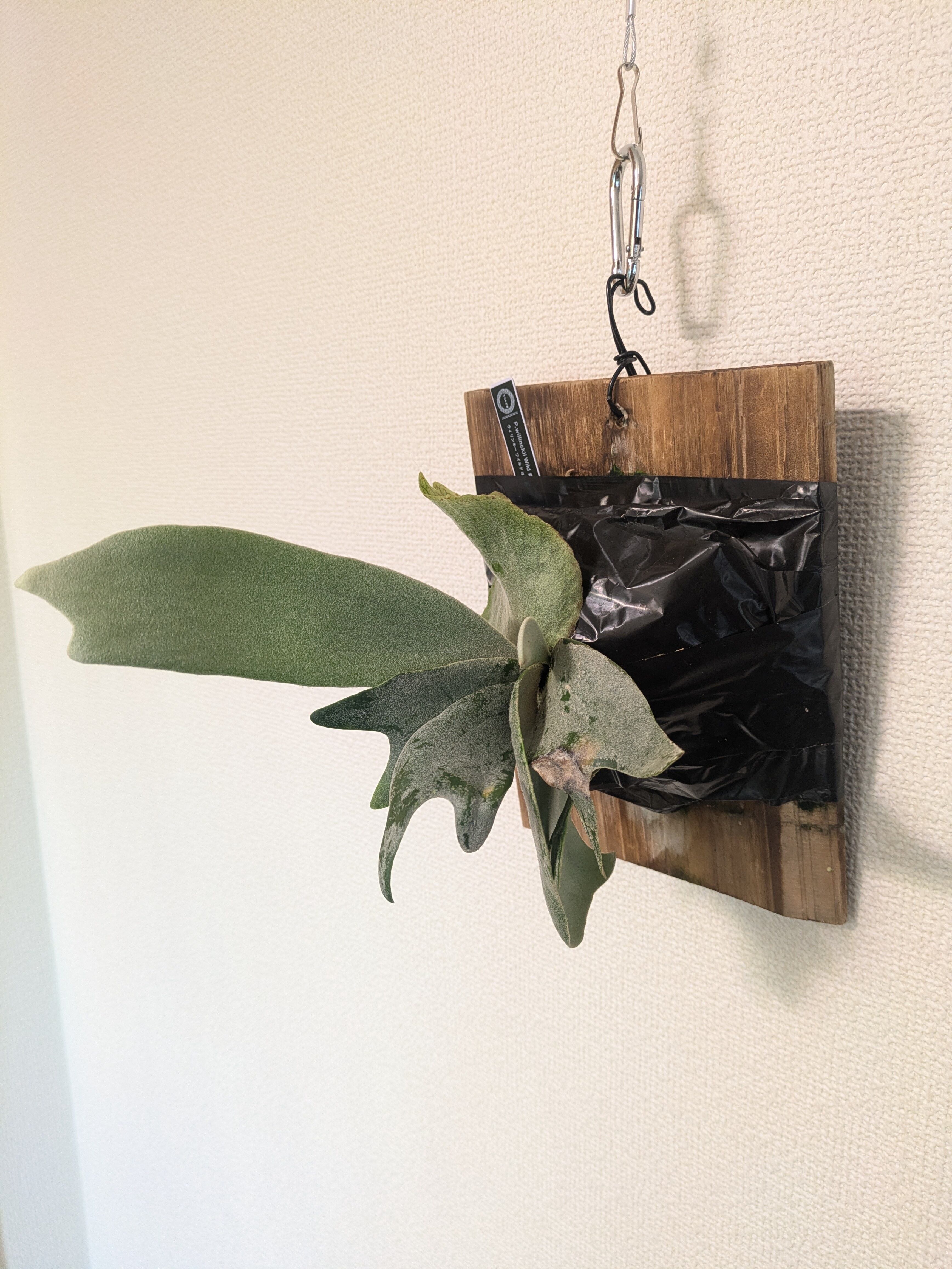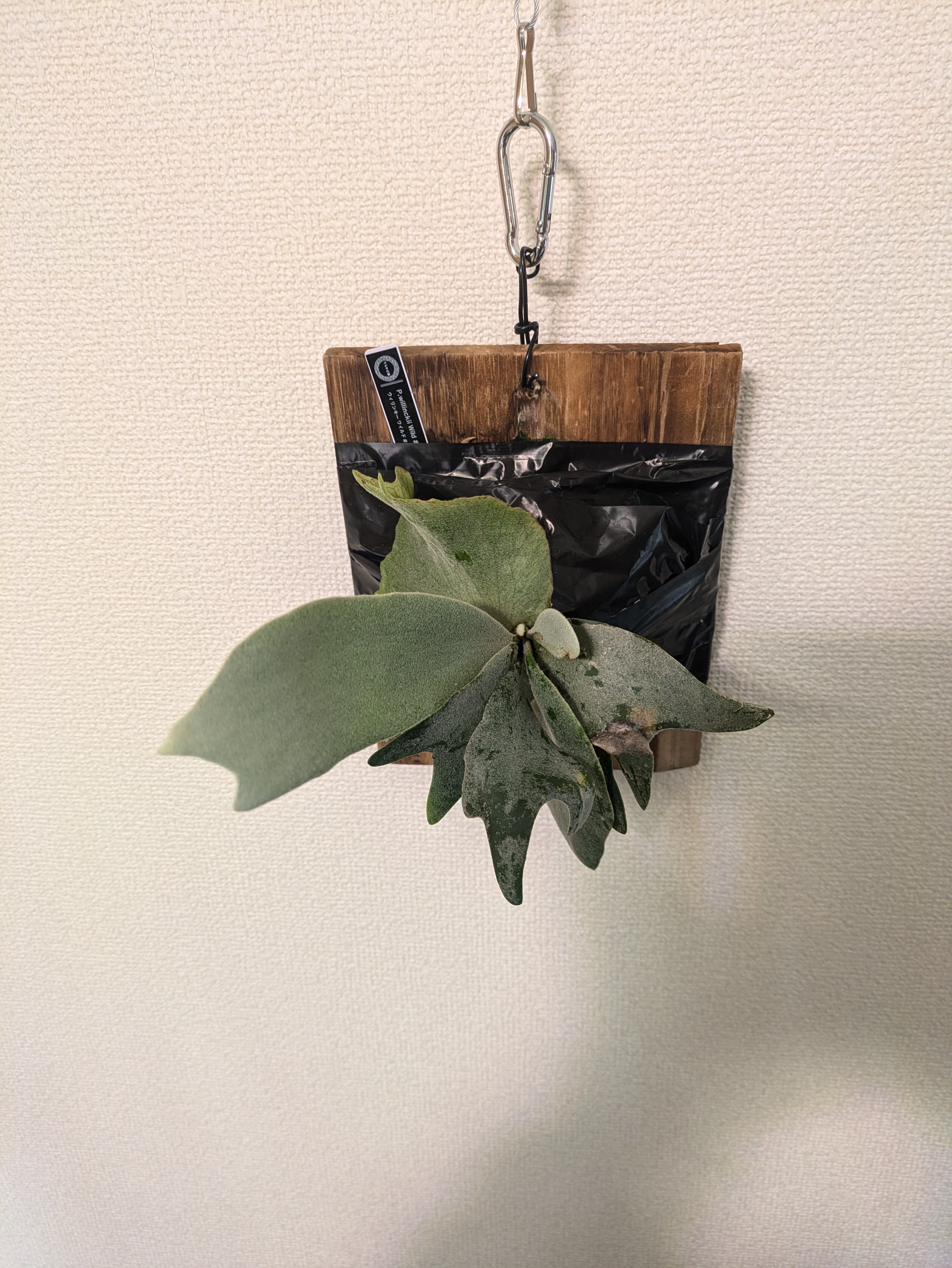 インドネシアの山で採れたワイルド個体のビカクシダです。品種名はないですが、その分、どんな成長を見せてくれるのか、日々の変化を楽しむことができるのがワイルド株の醍醐味です。